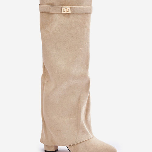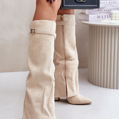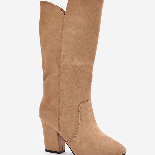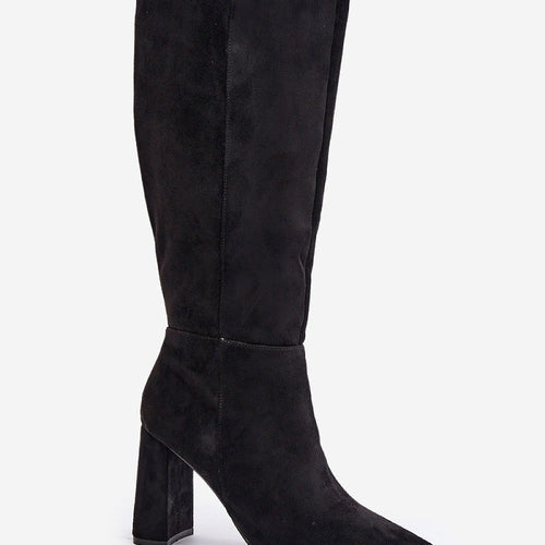 Elegant boots made of eco-suede, set on a sturdy stiletto heel, are a perfect choice for colder days. The zipper closure makes them easy to put on, and the pointed toe adds a sophisticated touch. Stylish and fashionable, they go well with dresses and skirts, creating elegant styling for various occasions. You should definitely own them! fabric imitation leather suede...