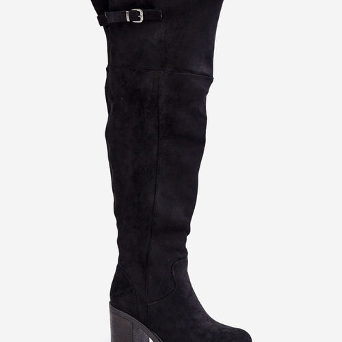 Women's knee-high boots made of faux suede are a perfect choice for colder days. Set on a stable block heel, they provide comfort and confidence with every step. Rounded toes add subtle character, while the interior lined with shoe lining ensures warmth and comfort. The knee-high shaft adorned with a buckle strap adds a stylish finish. Perfect for autumn-winter stylings,...