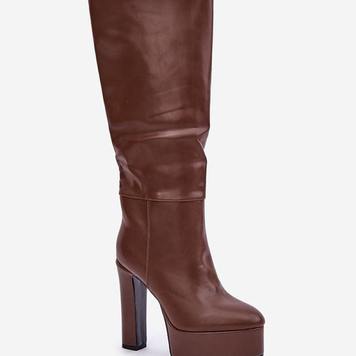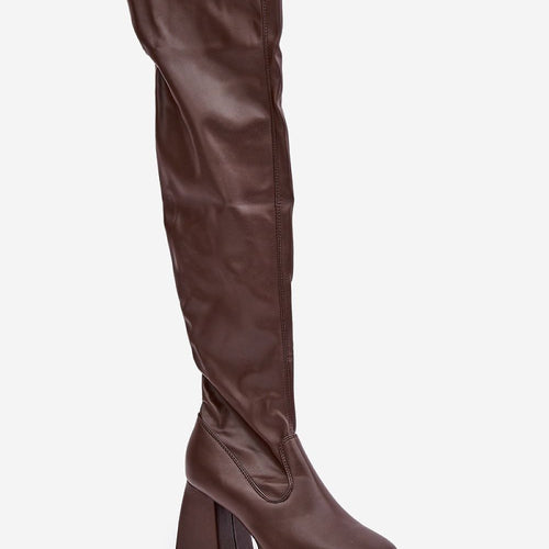 Fitted women's boots made of eco leather, which perfectly emphasize the legs. Set on a stable pillar heel, they provide elegance and comfort. The over-the-knee shaft adds chic, and the square toes give a modern character. Slip-on model, with an additional zipper closure for easy on and off. The inside is lightly lined with a shoe lining. Stylish and feminine,...