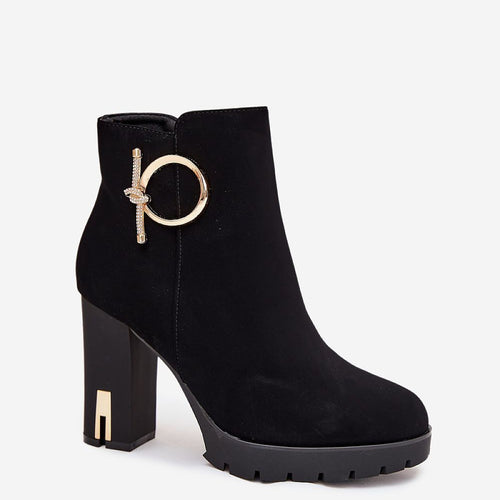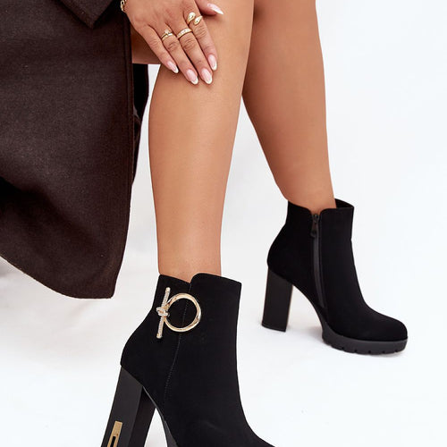 Women's ankle boots with a stiletto heel are an elegant proposition for colder days. Fastened with a zipper, they are comfortable to put on, and the insulated interior provides warmth and comfort. A stylish accent that catches the eye is the gold decoration placed on the side of the upper. This model is perfect for both everyday and more elegant...