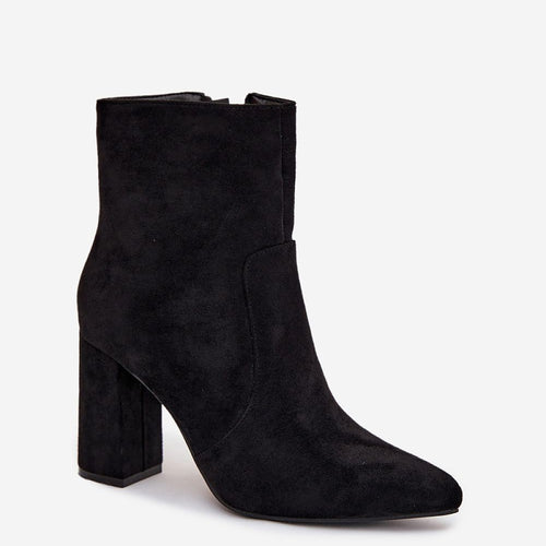 Women's ankle boots made of soft eco suede are a stylish choice for colder days. The model fastened with a zipper is comfortable to put on, and the insulated interior provides comfort and warmth. Pointed toes add elegance, and the stable pillar-type heel beautifully slims the silhouette. These versatile ankle boots will work great in both everyday and elegant stylings....