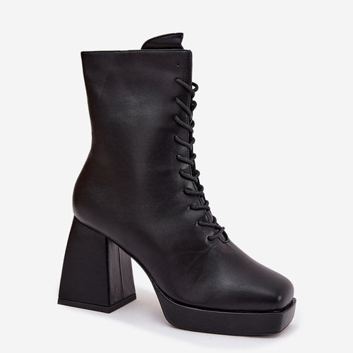 Women's ankle boots made of eco leather are a stylish proposal for cooler days. Set on a stable column heel guarantee comfort, and the insulated interior provides comfort and warmth. The lace-up and zip-up model combines a fashionable look with a practical solution, making it easier to put on and adjust to the foot. Square toes add a modern character...