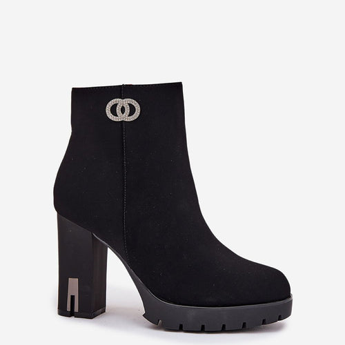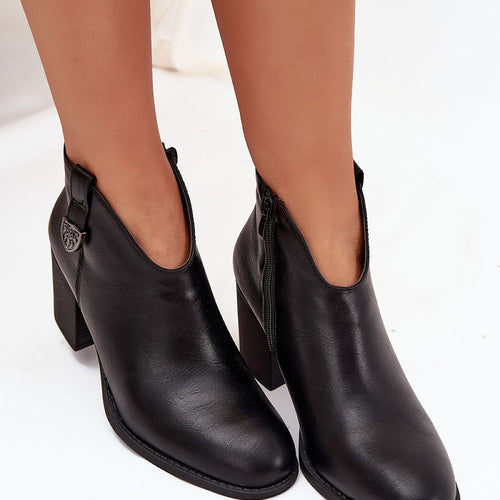 Women's ankle boots from the Jezzi brand. Made of eco leather. The interior is lined with a shoe blanket for comfort and warmth, and the low cut with a zipper guarantees easy on and off and everyday wear. A subtle accent is a short strap with a decorative detail placed at the top of the upper, adding elegance and a...