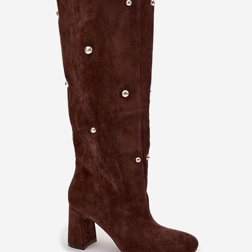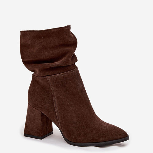 Women's boots made of faux suede are a stylish proposal for the autumn-winter season. Set on a stable column heel, they provide comfort while walking and subtly emphasize the silhouette. Rounded toes give the whole a classic look, and the interior lined with a shoe lining guarantees warmth on colder days. Attention is drawn to decorative details on the upper,...