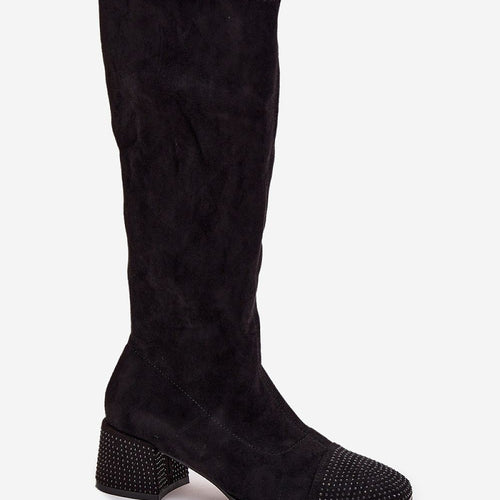 Women's boots made of eco-suede are a proposal that combines classic with a touch of modern shine. The model is set on a stable block heel, adorned with shimmering zircons that add a unique, feminine character to the whole. Delicate decorations are also placed at the front of the shoe. Fastened with a zipper, they are comfortable to use and...