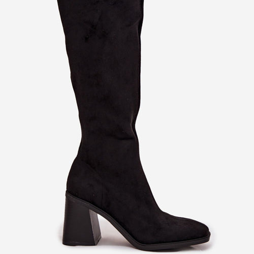 Women's boots made of eco-suede are a perfect proposal for the autumn-winter season. The model set on a massive column heel provides stability and comfort when worn. Rounded toes give the whole a classic look, and a practical zipper closure makes it easy to put on and take off. The interior lined with soft shoe lining guarantees thermal comfort on...