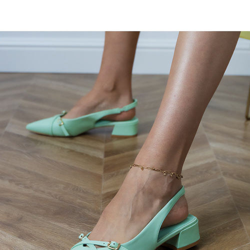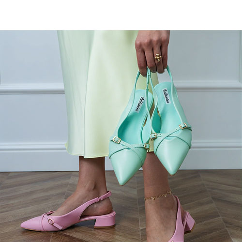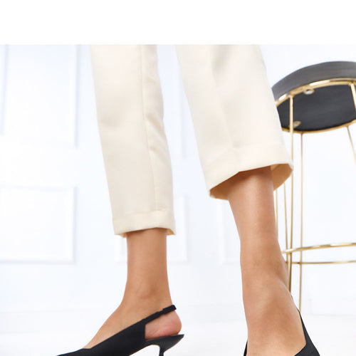 Stylish pumps made of high-quality eco-leather are an excellent choice for women who appreciate class and comfort. The model stands out with an open heel and an elegant decorative strap on the front, which subtly emphasizes the feminine style. The pointed toe visually elongates the foot, giving the silhouette lightness, while the stable block heel measuring 3.5 cm ensures comfort...