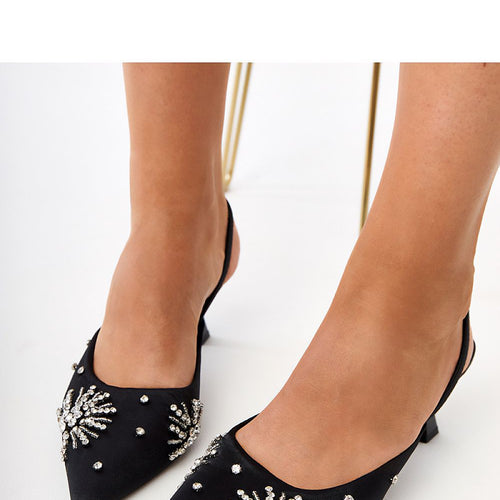 Stylish and subtly shiny, these elegant pumps are a combination of class and modern femininity. Made of delicate fabric, adorned with zircons that beautifully shimmer in the light, adding sophistication and elegance to the shoes. The model with an open heel and pointed toe looks extremely light and graceful. The slip-on construction provides easy wearing, and the slim 6.5 cm...