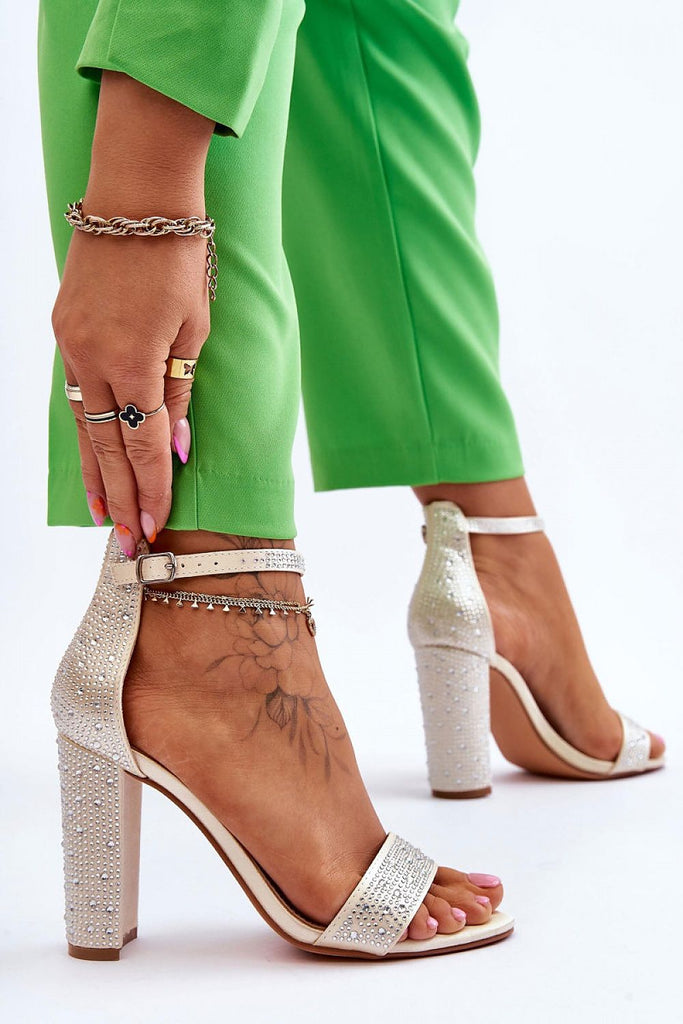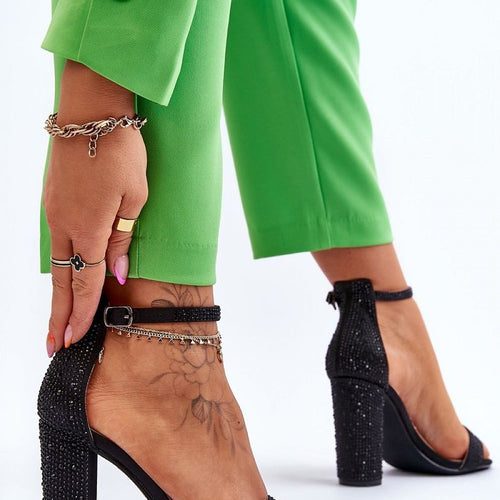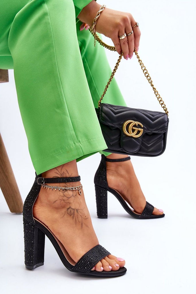 Exceptional women's sandals on a massive heel in the form of a post. This model was made of eco leather. In addition, there are rhinestones imitating zircons on the straps. This model has an adjustable strap fastened with a buckle. Soft, eco leather insole will ensure comfortable use of the footwear. A perfect model for all kinds of important celebrations...