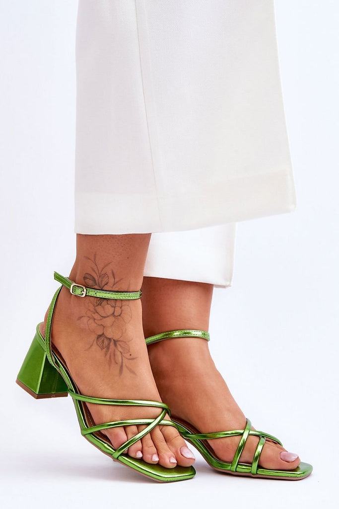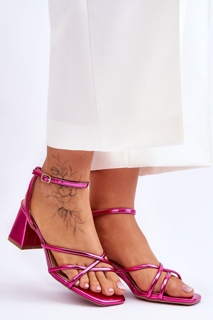 Women's sandals on a post with a height of 10,5 cm. Embellished with sparkling zircons, the heel makes them irresistible. The fashionable clasp at the ankle beautifully emphasizes it, and the lacquered finish adds extravagance to them.... You will feel like a real star in them! Outer material ? ecological leather. fabric artificial leather Heel height 10,5 cm Size Insole...
