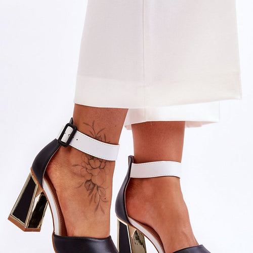 Colorful women's sandals on a geometric heel. This insane model is distinguished by a striking color combination, which perfectly harmonizes with a stylish gold finish. The adjustable clasp will beautifully emphasize the ankle, and the 9 cm high heel will slenderize your silhouette.... Do not wait and order them today! Outer material ? ecological leather. fabric artificial leather Heel height...
