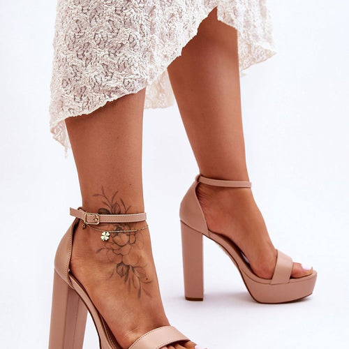 Women's sandals with a heel height of 13 cm. Thanks to the 4 cm high platform you will feel stable, and the high heel will provide fabulous long legs! The lacquered finish gives the shoes character, and the adjustable buckle around the ankle allows you to perfectly adjust the shoe to your foot and gracefully emphasizes the ankle.... External material...