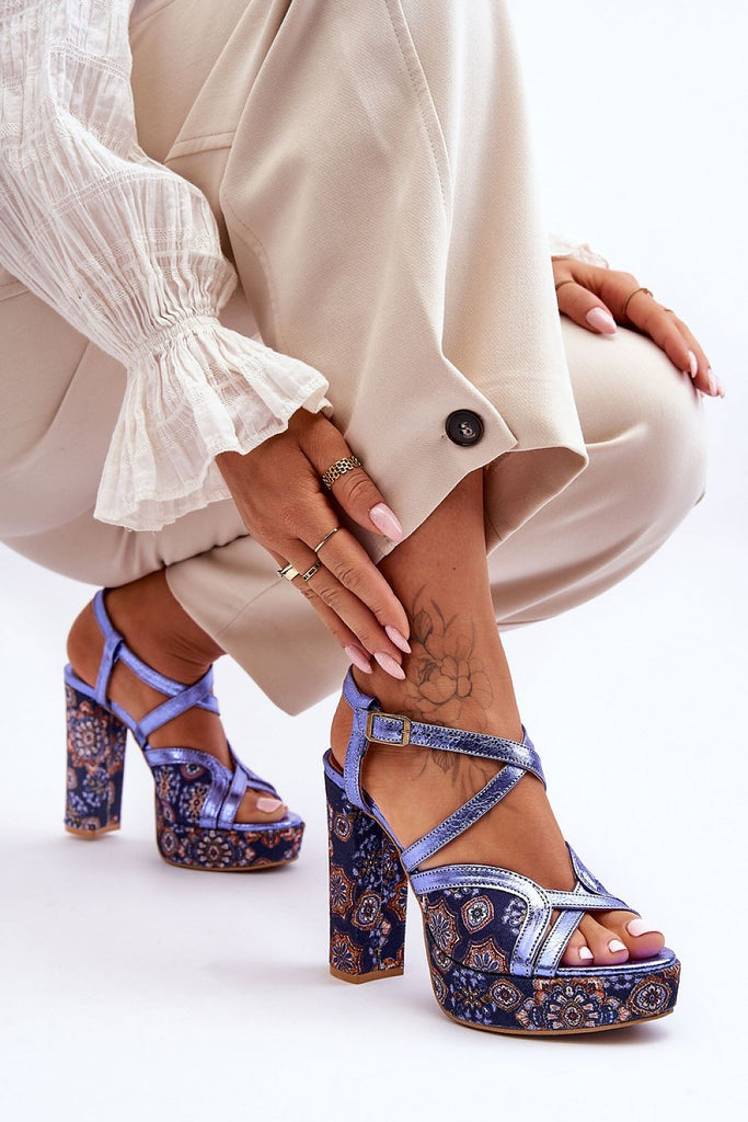 Women's sandals with a heel height of 13 cm. Thanks to the platform with a height of 3.5 cm you will feel stable, and the post will elongate your silhouette - Wow effect guaranteed! Delicate straps beautifully emphasize the foot, and the adjustable clasp around the ankle allows for a perfect fit.... Outer material ? ecological leather. fabric artificial leather...