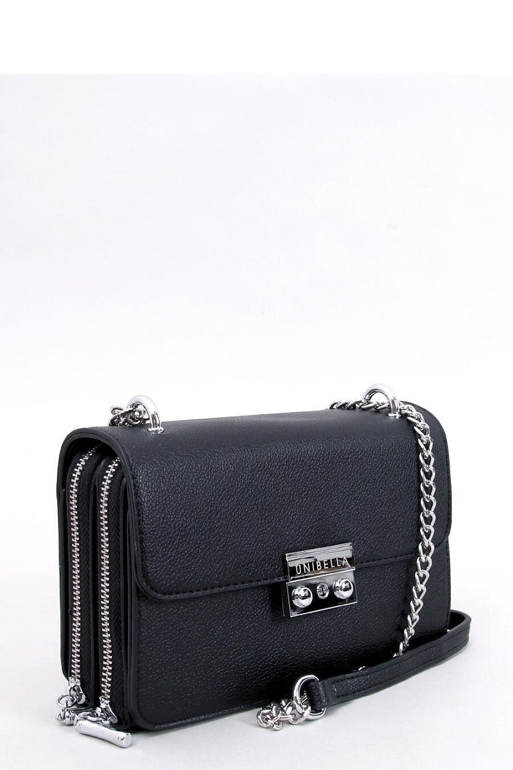 A stylish women's handbag - a postbag. It has a long, non-removable strap in the form of a silver-colored chain. It is fastened with a flap with a stylish snap closure. Inside there are two separate zippered compartments. Not only does it look great, it is also very practical : ) Outer material ? ecological leather.