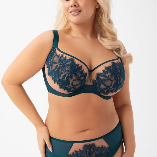 Soft bra in an elegant, lace version, designed especially for larger busts. Thanks to the bottom and side underwires, it provides excellent support, and its construction effectively gathers the breasts from the sides, giving the neckline a beautiful and natural shape. The model has adjustable, non-detachable straps and a comfortable back closure, guaranteeing a perfect fit to the silhouette and...