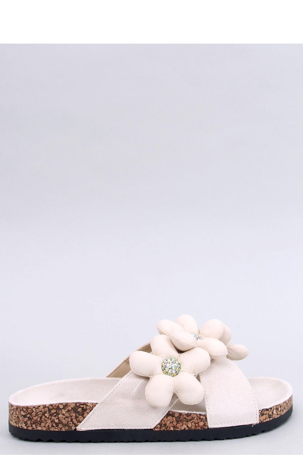 Women's flip-flops on a cork sole. They are unique thanks to the beautiful cushion flowers decorated with glittering stones. The contoured inner insole guarantees comfort with every step. These are the perfect shoes for summer! Outer material - ecological suede + fabric.