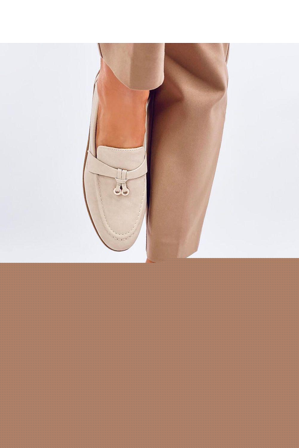 Classic moccasins for women. Thanks to the subtle decoration on the front they gain a unique charm.... In these shoes you will always feel fashionable and comfortable - they have a soft inner insole. They are made of organic leather in matte finish.