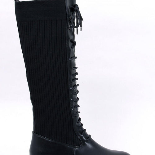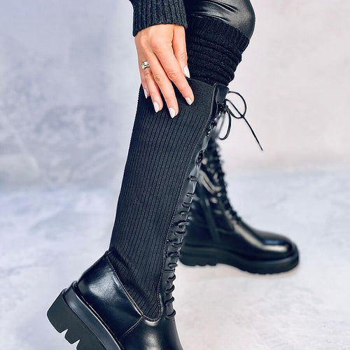 Lace-up women's boots - platform boots. The elastic upper provides a perfect fit, and additionally gives the shoes an original character.... In addition, the boots have a convenient zipper closure. This is an unquestionable must have! Outer material - ecological leather + fabric. fabric leatherette + fabric warmers soft fur Heel height 5,5 cm Sole height 3 cm Size Insole...