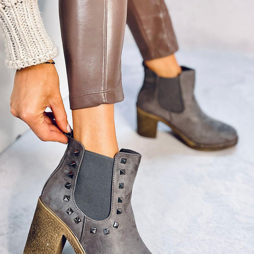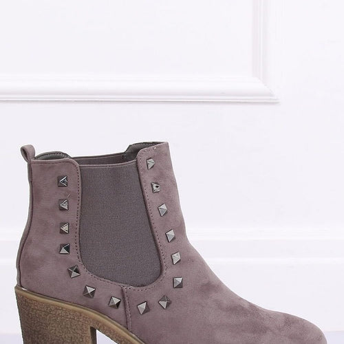 Women's boots ? studded slippers. This model of shoes is a proposal for fans of rock accents. Stable wide heel of 8,5 cm height elongates legs and is very comfortable. An additional decoration is the elastic inserts with studs around them, which are characteristic for the slippers. They are made of very pleasant to the touch organic suede, and the...