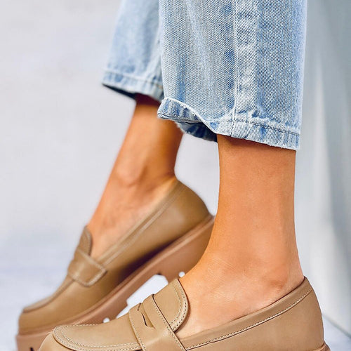Women's platform moccasins. The combination of a classic cut with a fashionable high sole is always on trend : ) Soft inner insole will provide comfort on every step - see for yourself : ) Outer material ? matte ecological leather. fabric artificial leather Heel height 3,5 cm Sole height 1,5 cm Size Insole lenght 36 23,5 cm 37 24...