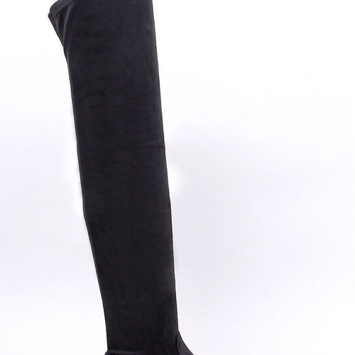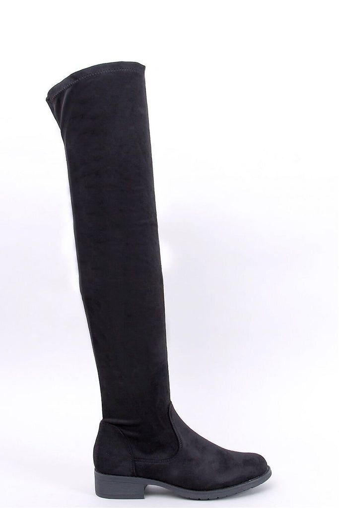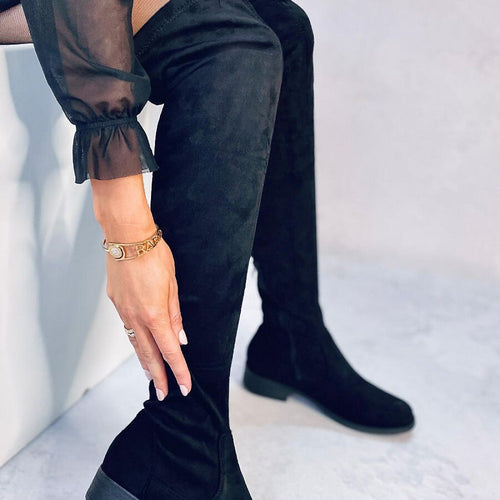 Women's flat musketeers - suede jackboots. This classic model is a must-have item in every woman's closet : ) They have a neat cut in a universal black color.... Comfortable putting on is provided by a zipper on the side of the upper. Do not let yourself be persuaded! Outer material - ecological suede. fabric ecological suede warmers ~delikatne futerko...
