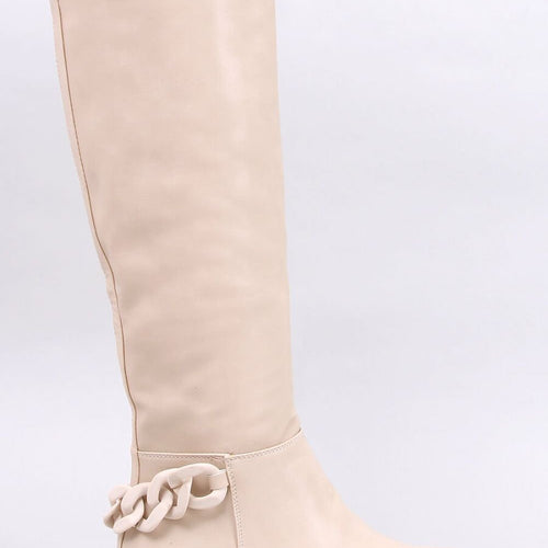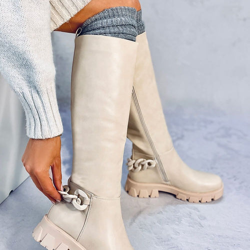 Women's boots - jackboots on a high sole. They have a minimalist design with an easily removable fashionable chain. If you follow the trends then you absolutely must have them! The comfort of putting them on is provided by the zipper closure on the side of the upper. They are made of organic leather, on a foam lining. fabric artificial...