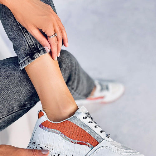 Sports shoes on a high sole. They are distinguished by an original cut on a massive, dotted sole, which was juxtaposed with the most fashionable accessories ? snake skin motif inserts, as well as glitter and holographic inserts. Tempt yourself to a bit of madness and order these shoes today! The interior is lined with fabric. Outer material ? ecological...