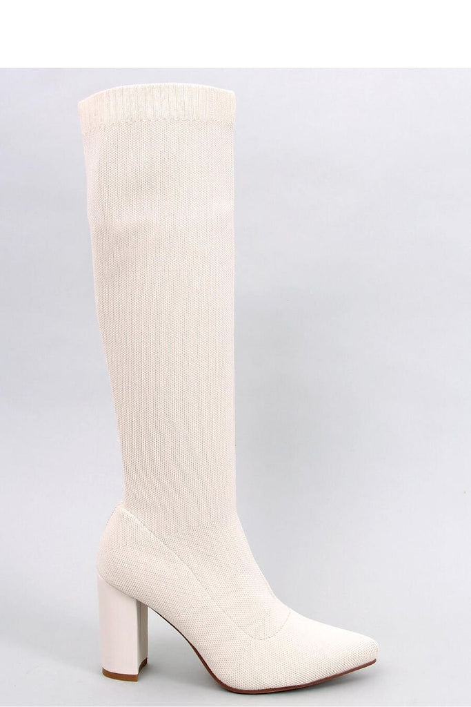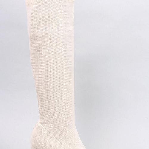 Women's boots with a flexible upper on a full-face post. They have a graceful cut with almond toes and a straight heel of 9,5 cm height, which will magnificently slenderize your silhouette.... The shoes are made of sock fabric, so they are perfectly fitted. Do not wait and order them today : ) Warming - soft fur in the foot...