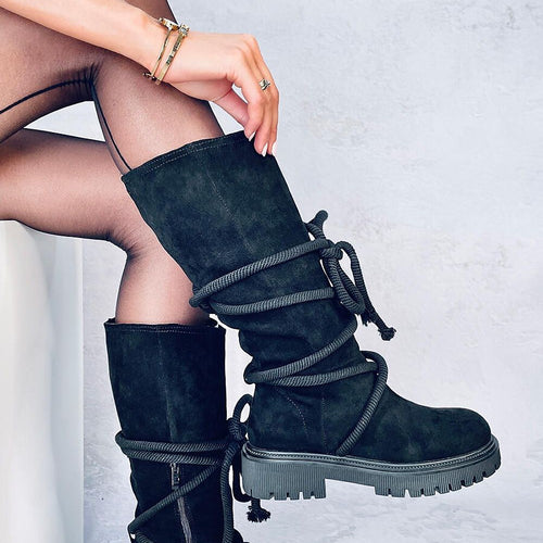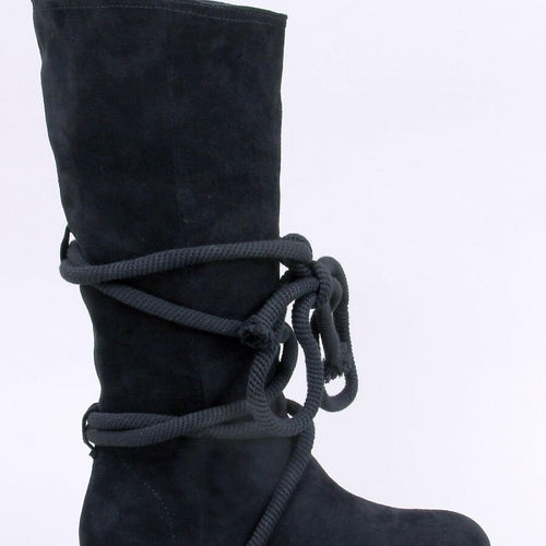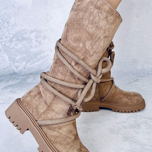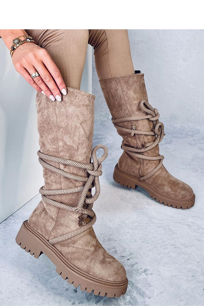 Women's suede boots - jackboots on a protector. This is an original model with a striking cord wrapping around the upper (it can be removed) - an absolute hit of the season! They have a practical zipper closure for easy putting on. The interior of the shoes is lined with soft fur. Outer material - ecological suede. fabric ecological suede...