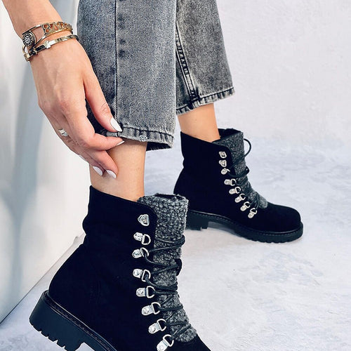 Women's suede boots ? trapper boots on a protector. Their cut is emphasized by lacing as in trekking boots, and thus they can be perfectly adjusted to the foot. A tongue of soft sheepskin adds variety to this unique model.... Don't be persuaded any longer and order them today! They are made of eco-suede, on a foam lining. fabric ecological...