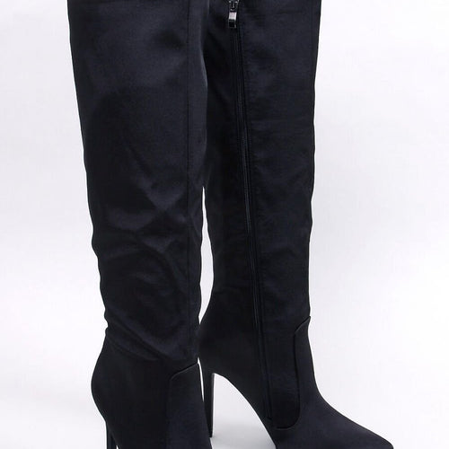 Satin boots for women on a stiletto heel. They present themselves simply phenomenal! They have shapely noses in a delicate pointed tip and a heel height of 11 cm, which will beautifully slenderize your silhouette. They are made of satin fabric that emphasizes their unique style.... The shoes have a comfortable zipper closure on the side of the upper. fabric...