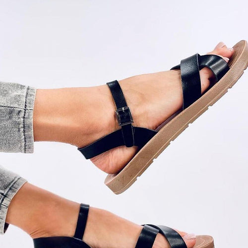 Women's flat heel sandals. Their undeniable advantage is a comfortable inner sole that provides comfort with every step. They also have an adjustable ankle strap, which adds to their appeal. Most importantly, in these shoes, you will look and feel great! The outer material is made of synthetic leather. fabric artificial leather Size Insole lenght 36 23,5 cm 37 24,2...