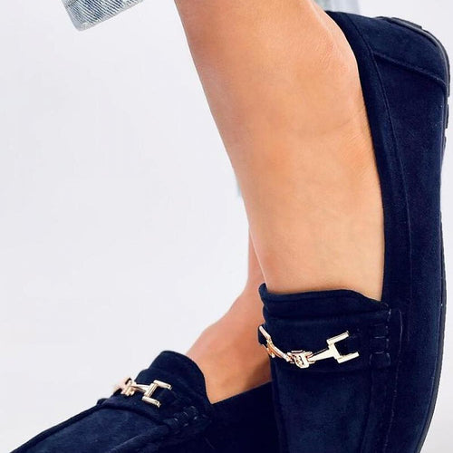 Women's suede loafers. The gold buckle and distinctive stitching give the shoes a unique style... This model will be a perfect addition to your everyday outfit, and comfort at every step is ensured by the inner padded insole. Outer material - eco-friendly suede. fabric ecological suede Size Insole lenght 36 23 cm 37 24 cm 38 24,5 cm 39 25...