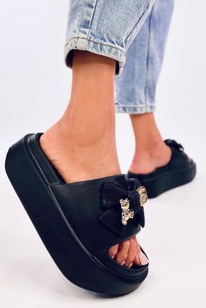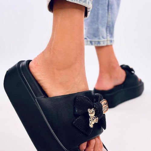 Women's platform flip-flops. A bow with an adorable golden teddy bear will surely steal your hearts :) This unique model is the most comfortable and trendy solution for summer days... Don't wait and order them today! Outer material - synthetic. fabric ~tworzywo piankowo-gumowe
