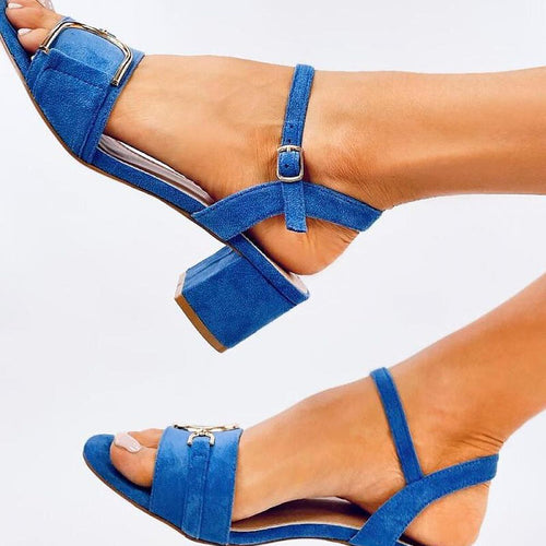 Suede women's sandals with low heels. Their simple design with a stylish embellishment will catch everyone's eye : ) The wide heel with a height of 5.5 cm ensures your comfort while walking, and the adjustable closure beautifully highlights the ankle... They are a must-have in your wardrobe! Outer material? Eco-friendly suede. fabric ecological suede Heel height 5,5 cm Size...