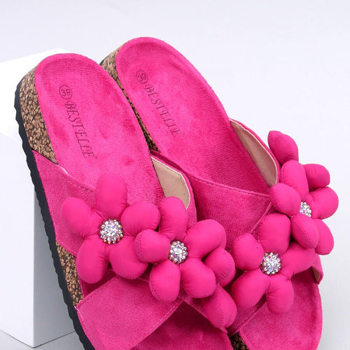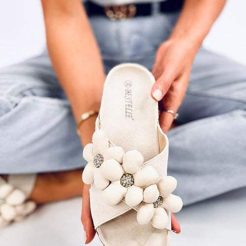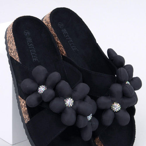 Women's flip-flops on a cork sole. They are unique thanks to the beautiful cushion flowers decorated with glittering stones. The contoured inner insole guarantees comfort with every step. These are the perfect shoes for summer! Outer material - ecological suede + fabric. fabric suede ecological + fabric Size Insole lenght 36 23 cm 37 24 cm 38 24,5 cm 39...