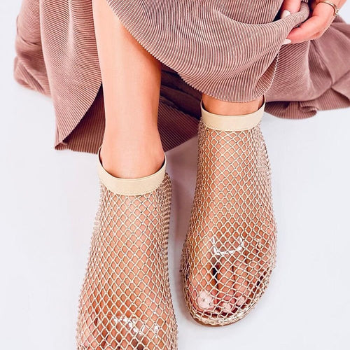 Original women's sandals made of mesh. They are an absolute hit of this season! Openwork pattern embellished with delicate cubic zirconias makes you will not be able to take your eyes off them : ) They will perfectly match with a long dress or maxi skirt.... Inside they have silicone straps, which perfectly hold the foot. Outer material - fabric...
