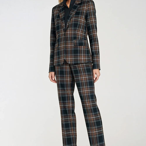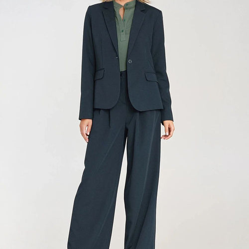 An elegant fitted blazer that subtly emphasizes the silhouette. Equipped with a classic collar with lapels, long sleeves and shoulder pads, giving the whole a flawless, distinctive line. The blazer is fastened with one button, adding minimalist elegance. At the front, there are practical flap pockets. The model reaches the hip line and is finished with a lining, ensuring comfort...