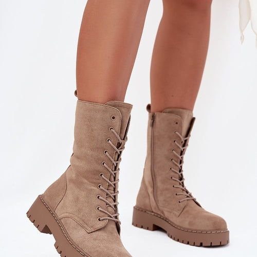 Classic women's ankle boots in the style of workers made of faux suede. The model set on a platform with a flat heel ensures a stable step, and the insulation guarantees comfort on colder days. Lacing combined with a zipper allows for easy putting on and perfect fitting to the foot, making them a great choice for everyday, casual stylizations....