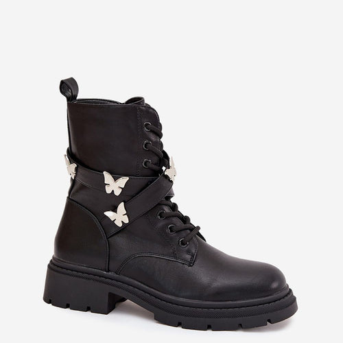 Women's workery boots made of eco leather are a fashionable and practical choice for colder days. The lace-up and zip closure model guarantees easy putting on and a good fit to the foot. The interior lined with a shoe blanket provides comfort and warmth while wearing. A stylish accent is the belt with silver studs, which gives the whole a...