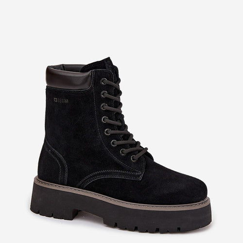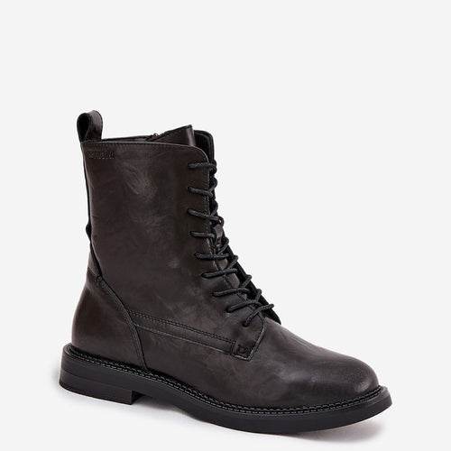 Classic women's work boots from Big Star, made of natural leather, combine timeless style with comfort. The model, set on a flat heel, has lacing and a zipper, which allows for easy putting on and perfect fitting to the foot. The insulated interior provides comfort on cooler days, and the versatile design makes the boots perfect for many everyday and...