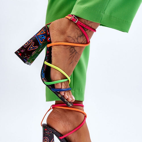 Fashionable women's sandals are made of textile material. The stiletto heel adds elegance and distinction to them. Fastened with an adjustable strap with a buckle, which ensures a proper fit to the foot. In addition, the soft eco leather insole guarantees comfort even during long wear. They are the perfect choice for summer days! fabric fabric Footbed artificial leather Heel...