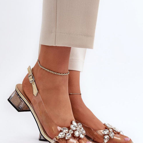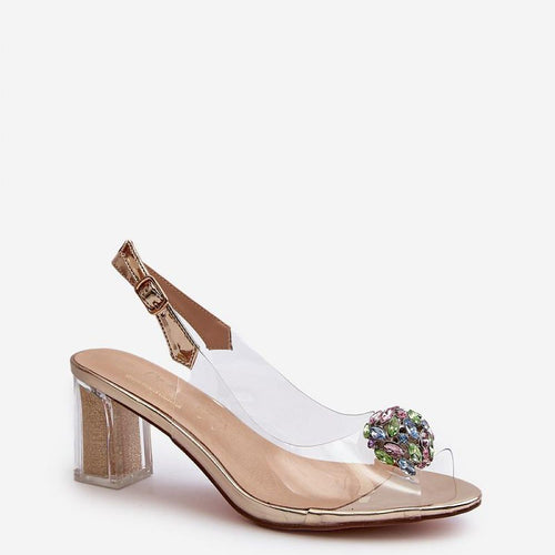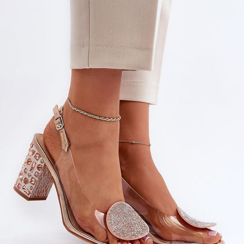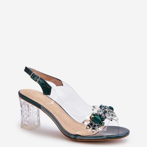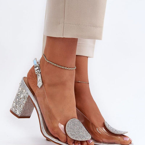 Fashionable sandals on an embellished post in a transparent style are a perfect addition to summer and evening outfits. Fastened by an adjustable strap with a buckle, they provide comfort and stability. The soft leather insole adds comfort during prolonged wear. Perfect for elegant and stylish outfits! fabric ~tworzywo sztuczne Footbed natural leather Heel height 8 cm Size Insole lenght...