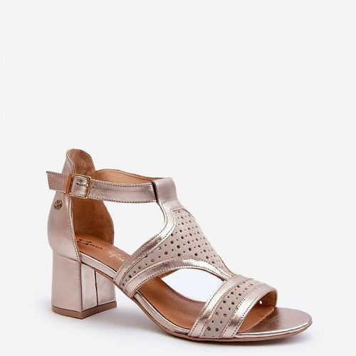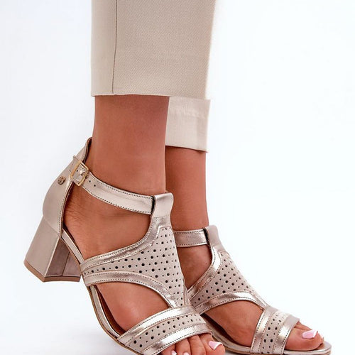 Women's sandals by Maciejka, made of genuine leather. Set on a block heel. Fastened with an adjustable buckle strap, providing a perfect fit. A model with a closed heel. Elegant and stylish, perfect for weddings and other special occasions. fabric natural leather Footbed natural leather Heel height 6 cm Size Insole lenght 36 23.5 cm 37 24 cm 38 24.5...