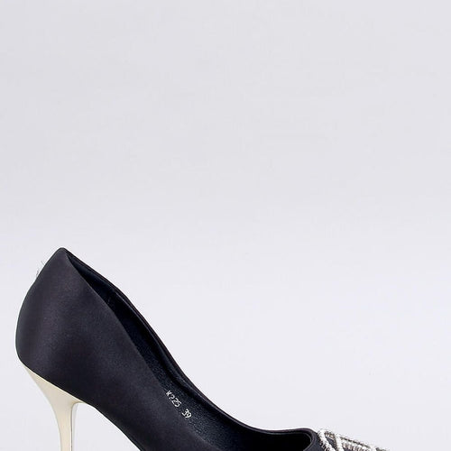 Elegant women's stilettos. The embellishment with sparkling crystals and satin finish is a perfect combination! The metallic heel with a height of 10 cm will slenderize your silhouette and attract glances.... A perfect choice for special occasions : ) Outer material ? fabric. fabric fabric Heel height 10 cm Size Insole lenght 36 23 cm 37 24 cm 38 24,5...