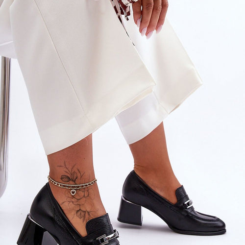 Comfortable pumps with soft insole made of natural leather will ensure comfortable use even all day long! Set on a massive, not high heel. A great model for work, a family celebration or an important meeting. The shoes have a decoration on the front of the upper and a stiffened heel counter. Do not wait any longer and buy today!...