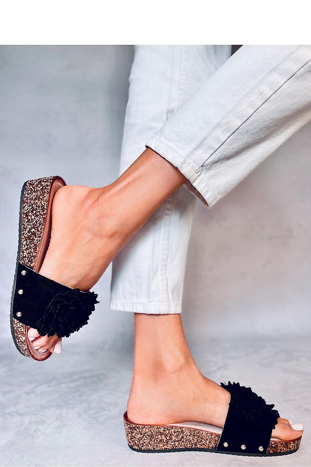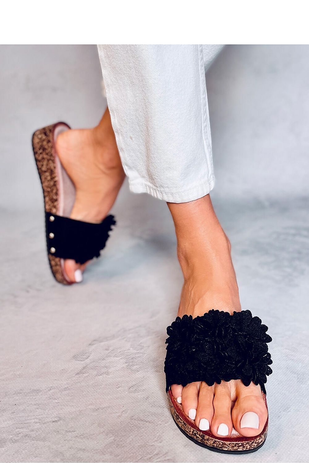 Women's flip-flops on a cork heel with a height of 4 cm. The eye is caught by a charming floral application.... Flip-flops on a cork platform are very popular among female fans of comfort, so if you value comfort, you must have them! External material ? ecological suede.