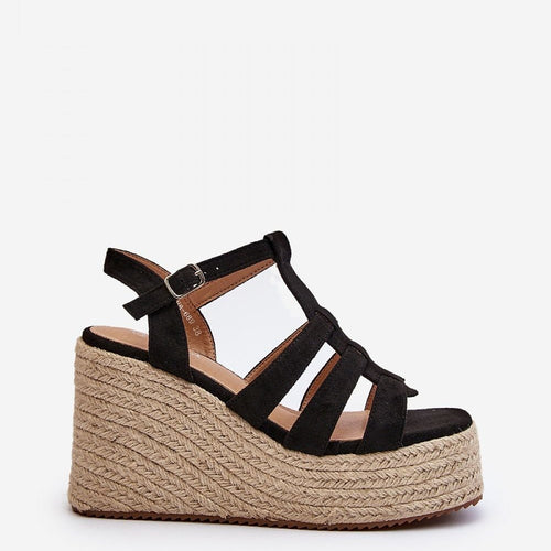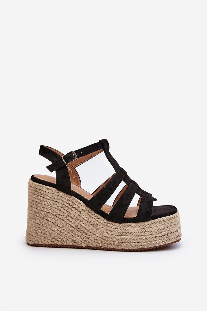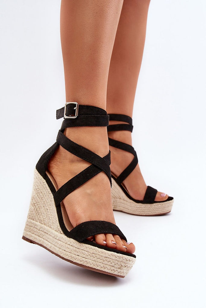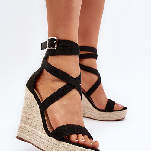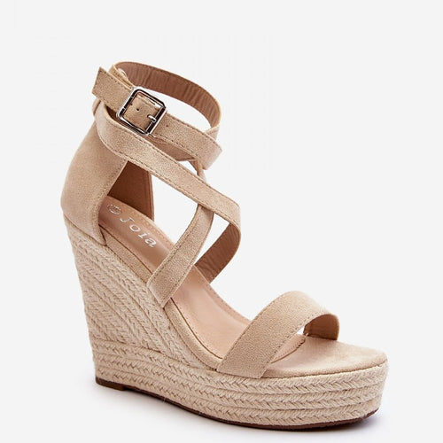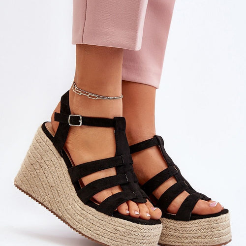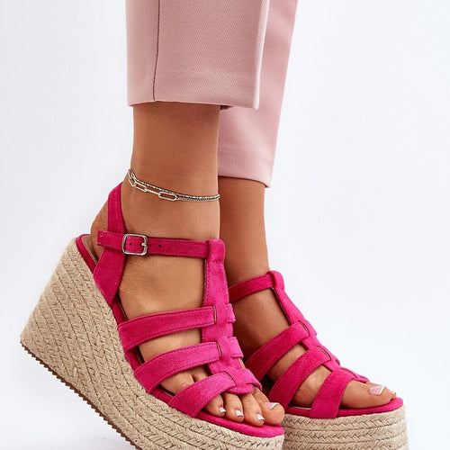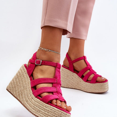Women's sandals made of eco-suede. Set on an anchor and platform with jute braid. Fastened with an adjustable strap with a buckle. This model is perfect for those looking for footwear that combines comfort and elegance, especially during long summer walks! fabric imitation leather suede Footbed artificial leather Heel height 12.5 cm Platform height 3.5 cm Size Insole lenght 36...