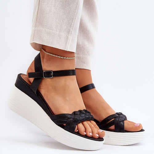 The unique women's sandals combine a stylish platform with an anchor, creating a striking design. Their unique look is due to the intertwining straps, which adds to their unique character. In addition, the soft insole made of eco leather guarantees comfort in wearing them even for a long time. The shoes fasten around the ankle with a buckle with an...