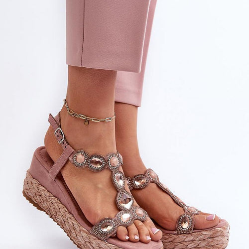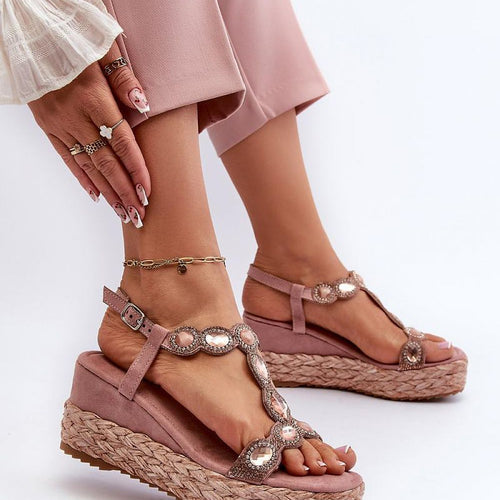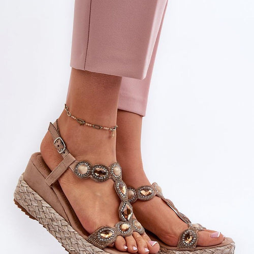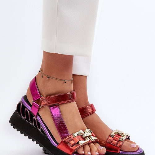 Women's sandals made of eco leather. Set on a wedge heel. Fastened with an adjustable buckle strap, allowing for precise fitting to the foot. The soft Comfort insole with a cushioning effect is extremely comfortable during use. fabric artificial leather Footbed imitation leather suede Heel height 7 cm Size Insole lenght 36 23 cm 37 23.5 cm 38 24 cm...